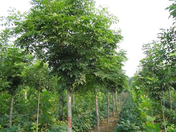 落葉喬木或灌木;樹皮厚,灰褐色至灰黑色,老時縱裂;皮孔小,灰至暗揭色;小枝具疣點,與葉軸、葉柄均被皺曲的短柔毛或無毛。葉叢生于當年生枝上,平展,一回、不完全二回或偶有為二回羽狀復葉,長可達50厘米;小葉(7-)11-18片 (頂生小葉有時與最上部的一對小葉在中部以下合生),無柄或具極短的柄,對生或互生,紙質,卵形、闊卵形至卵狀披針形,長(3-)5-10厘米,寬3-6厘米,頂端短尖或短漸尖,基部鈍至近截形,邊緣有不規則的鈍鋸齒,齒端具小尖頭,有時近基部的齒疏離呈缺刻狀,或羽狀深裂達中肋而形成二回羽狀復葉,上面僅中脈上散生皺曲的短柔毛,下面在脈腋具髯毛,有時小葉背面被茸毛。聚傘圓錐花序長25-40厘米,密被微柔毛,分枝長而廣展,在末次分枝上的聚傘花序具花3-6朵,密集呈頭狀;苞片狹披針形,被小粗毛;花淡黃色,稍芬芳;花梗長2.5-5毫米;萼裂片卵形,邊緣具腺狀緣毛,呈嚙蝕狀;花瓣4,開花時向外反折,線狀長圓形,長5-9毫米,瓣爪長1-2.5毫米,被長柔毛,瓣片基部的鱗片初時黃色,開花時橙紅色,參差不齊的深裂,被疣狀皺曲的毛;雄蕊8枚,在雄花中的長7-9毫米,雌花中的長4-5毫米,花絲下半部密被白色、開展的長柔毛;花盤偏斜,有圓鈍小裂片;子房三棱形,除棱上具緣毛外無毛,退化子房密被小粗毛。蒴果圓錐形,具3棱,長4-6厘米,頂端漸尖,果瓣卵形,外面有網紋,內面平滑且略有光澤;種子近球形,直徑6-8毫米。花期6-8月,果期9-10月。